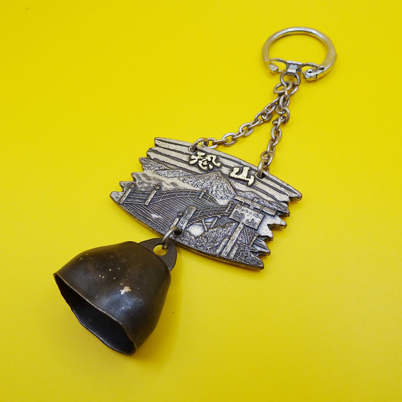 青森の霊場・恐山のメタルキーホルダー。下北半島のザックリした地図とカウベル付きなので、山で遭難しても安心。