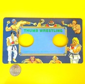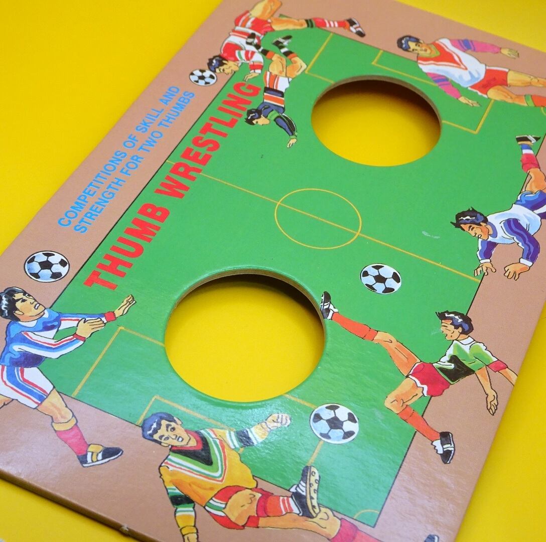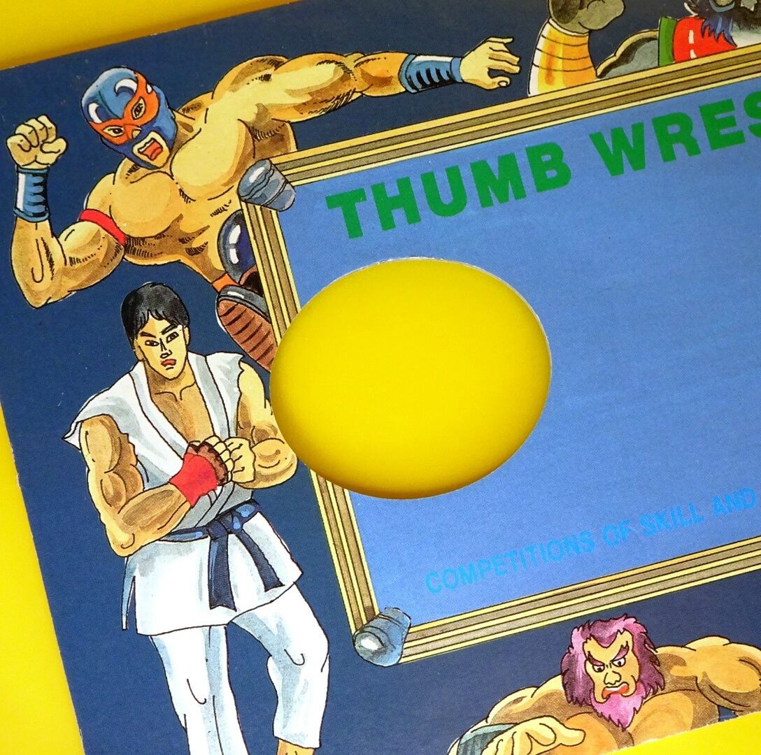 まったく雰囲気の違う2種類のステージが表と裏で楽しめる 指ずもう専用台紙。穴に親指を突っ込んでいざファイト!