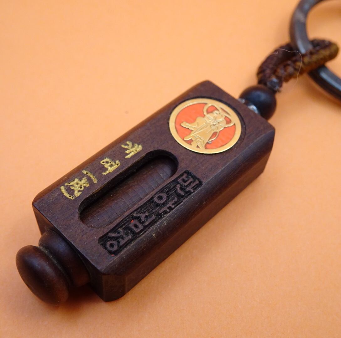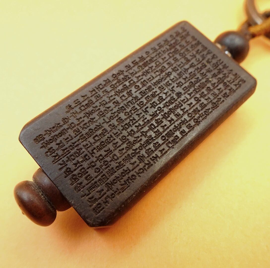 韓国で買った仏系キーホルダー。裏にはハングルのお経がビッシリ。軸を回すと中央の棒が回転、縦穴が開いてる面もあるけどなぜこんな作りをしているのかはよく分からない。