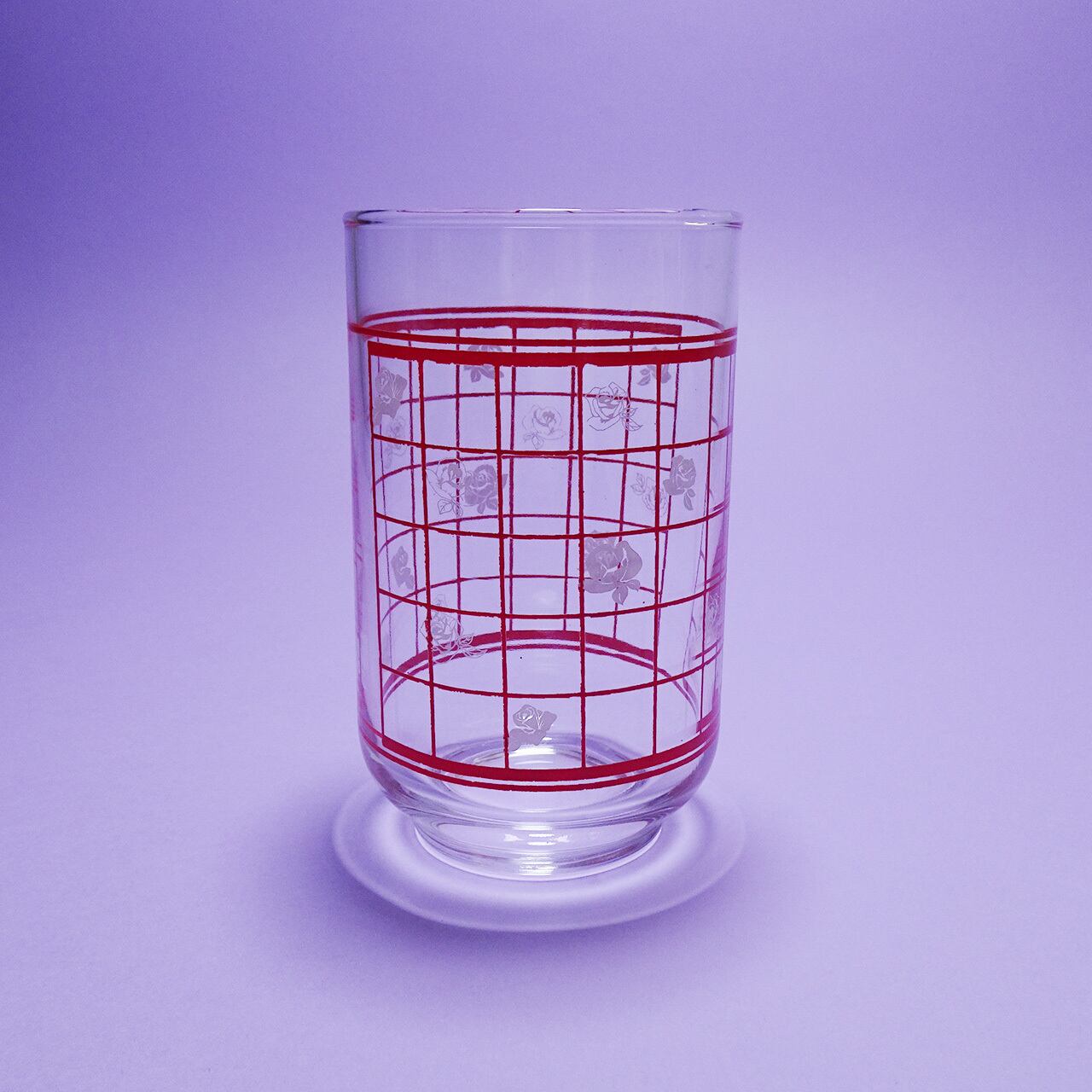 ちょっぴり田舎くさ可愛い薔薇格子柄コップ。サイズ:直径6.2㎝ 高さ10.3㎝
