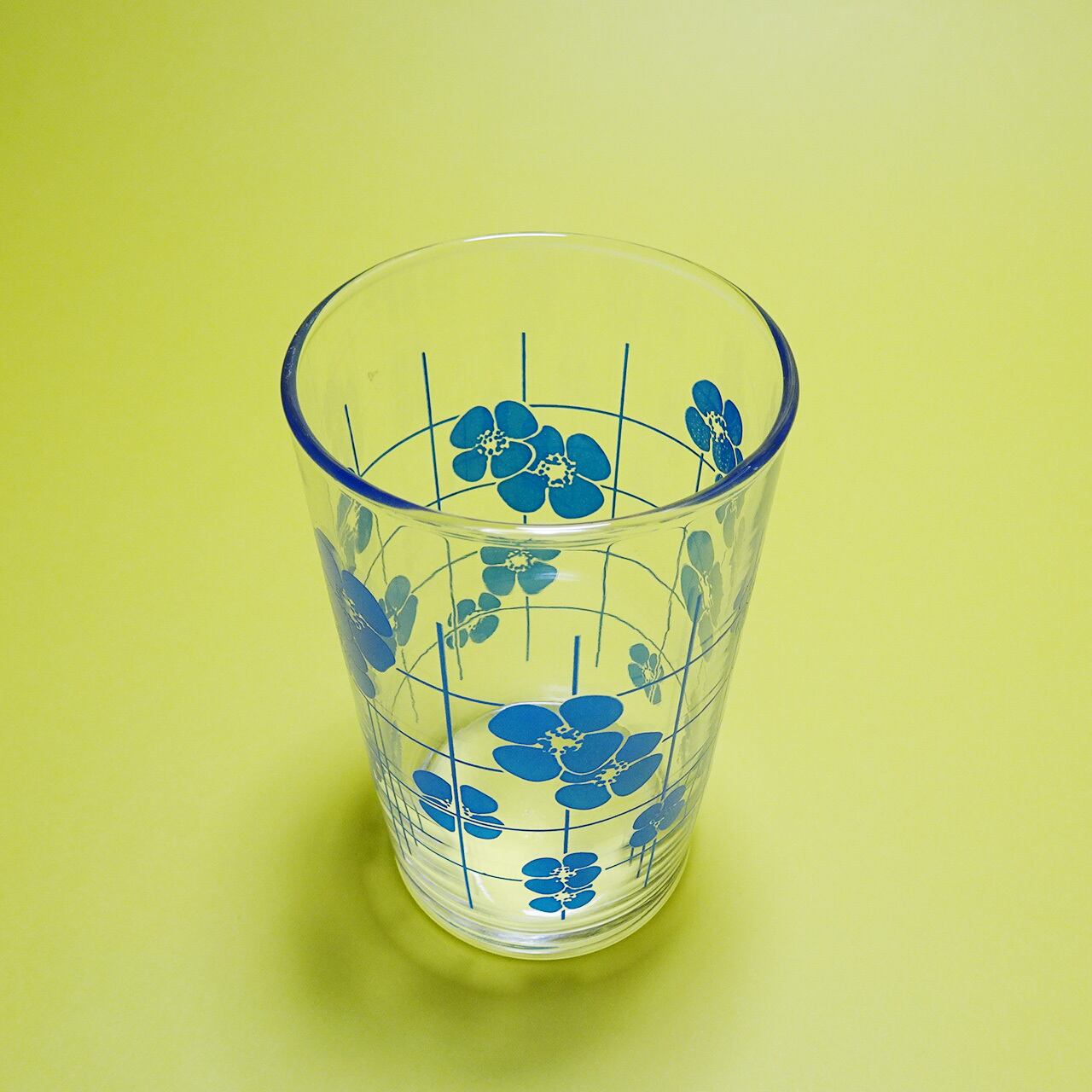安酒を注ぎたくなるようなお花と格子柄のコップ。サイズ:直径6.2㎝ 高さ10㎝