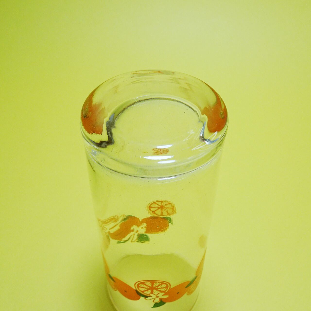 オレンジジュースを注ぎたくなるロングコップ。サイズ:直径5.6㎝ 高さ13.5㎝