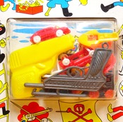 海賊の絵がメチャクチャ雑。グリコのオマケと思われる財宝がザクザク詰まったパック。