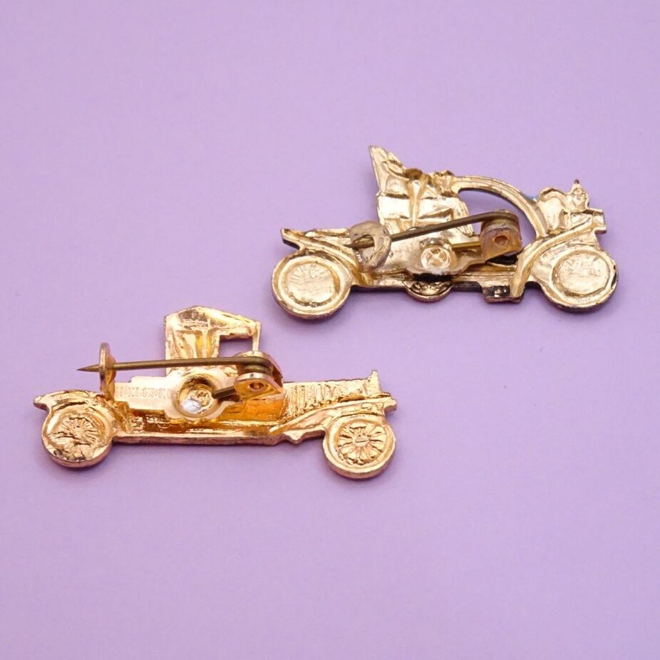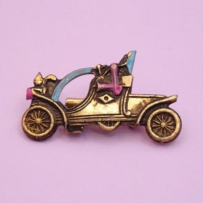 中世の人が乗ってそうな旧車のブローチ。かなり小さい。