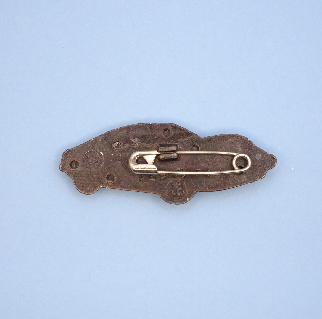 金属製のフェラーリブローチ。 全体に古美たくすみあり。