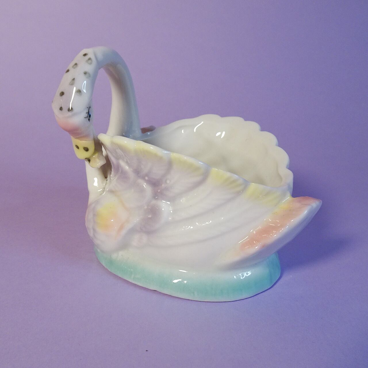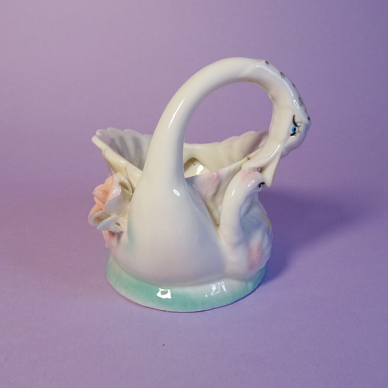 仲睦まじい白鳥親子のエレガンスな小物入れ。