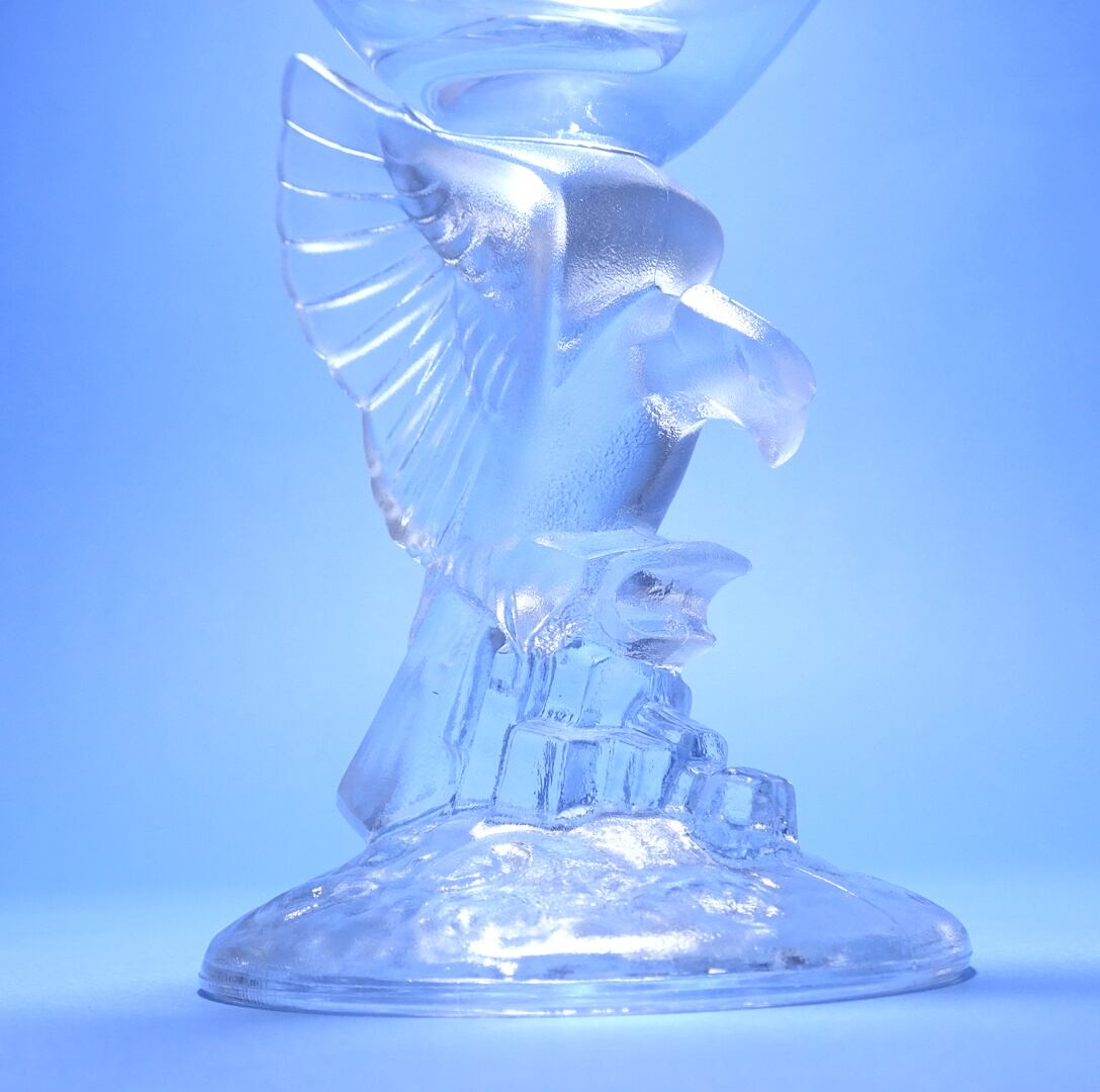 重厚感のあるガラスのワシの高杯グラス。ちょいボロの箱付き。