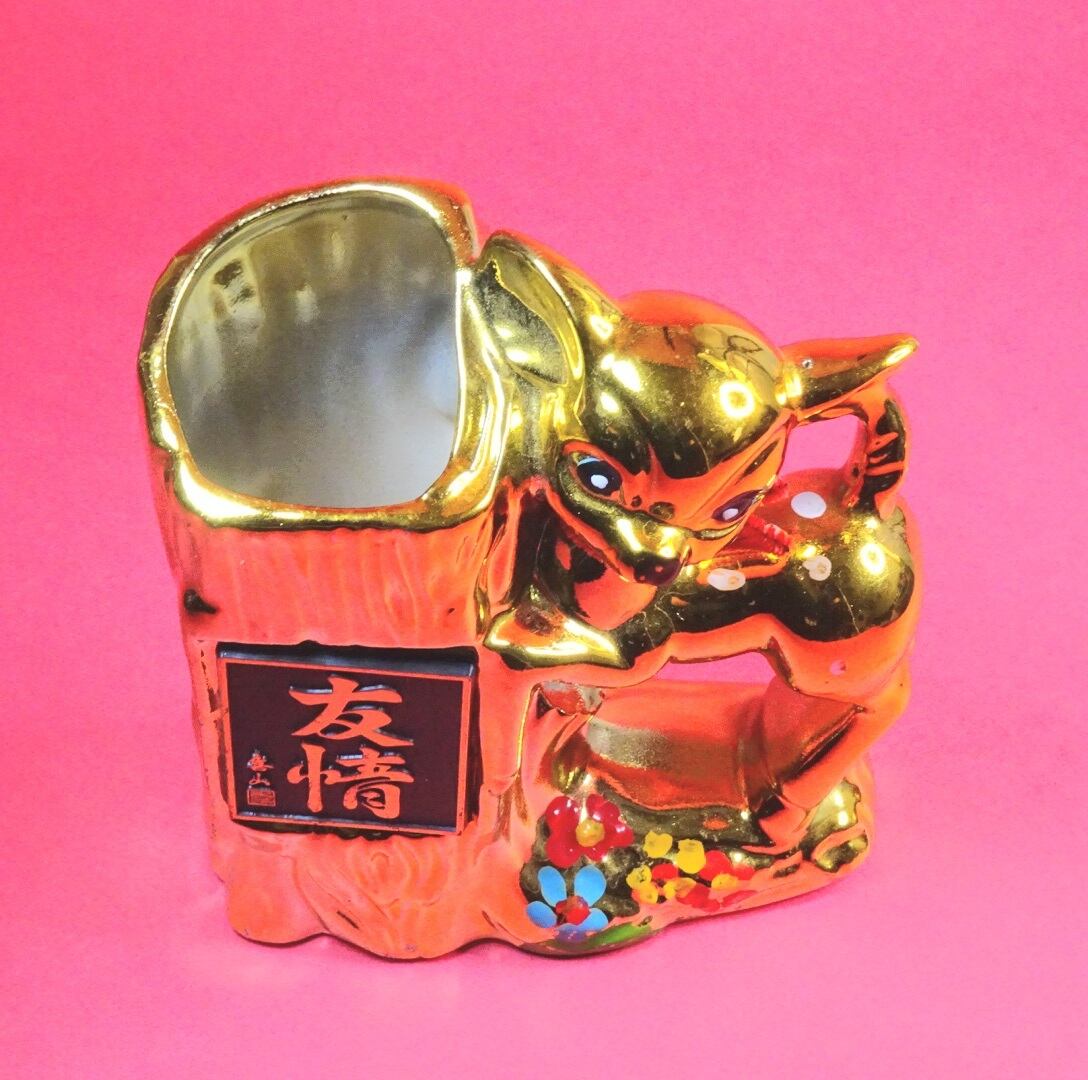 友情プレートの端に記されたサインが気になる。そう言えばこれはペン立て。