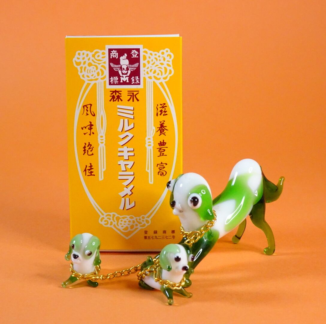 ハンドメイドならではのくずれ顔が堪能できるガラス細工の親子犬。