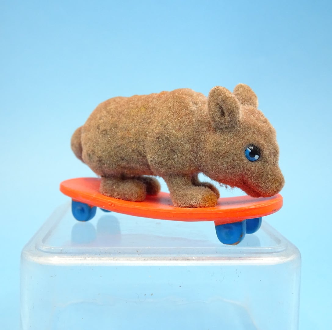 モサモサした動物がスケートボードをたしなんでいるフィギュア。