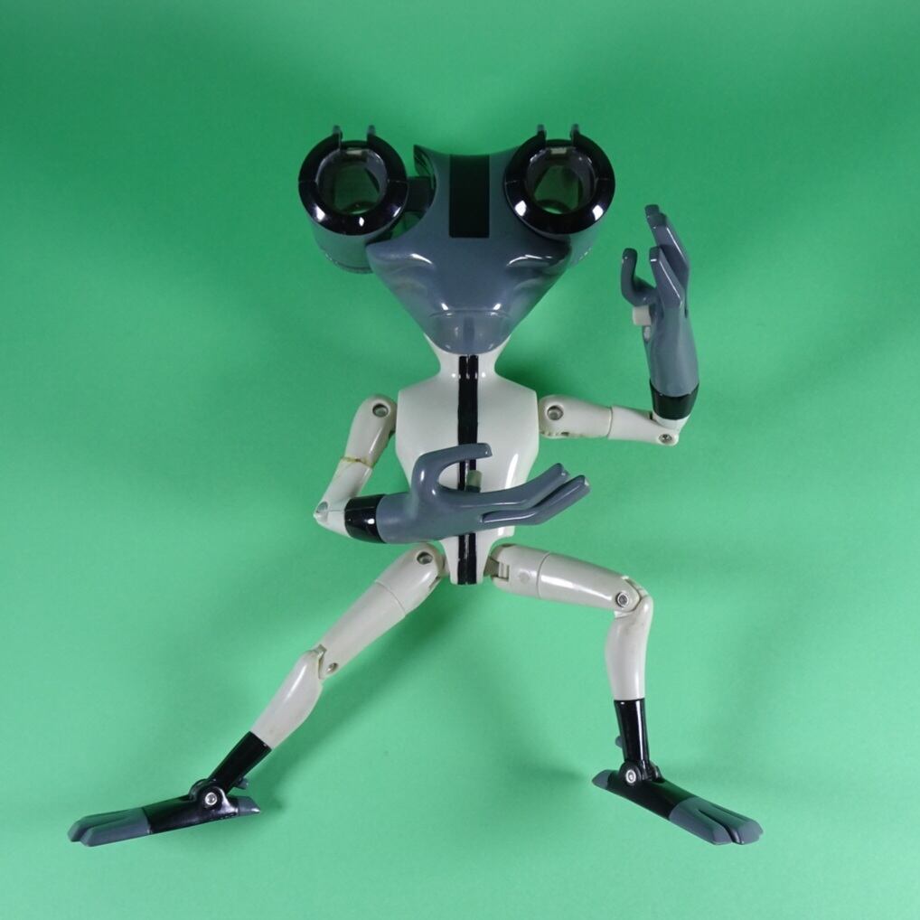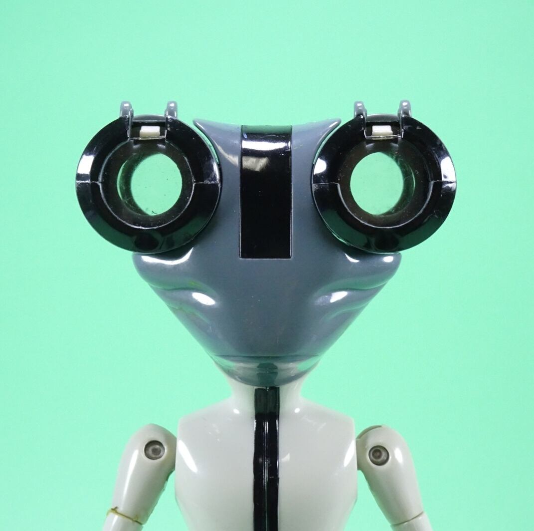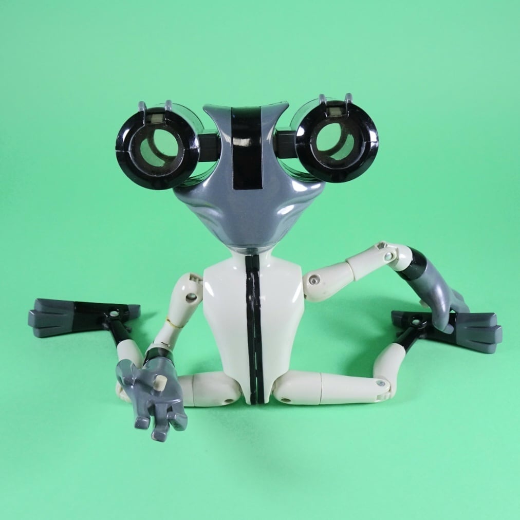 ショーケースに飾られていた割には大して状態の良くない中古品であり パーツは一部欠損していてジャンクそのものだったが、初見の知識のなさからくる妙なオーラにつられて購入。宇宙人とロボットの間みたいでカッコいいじゃん。