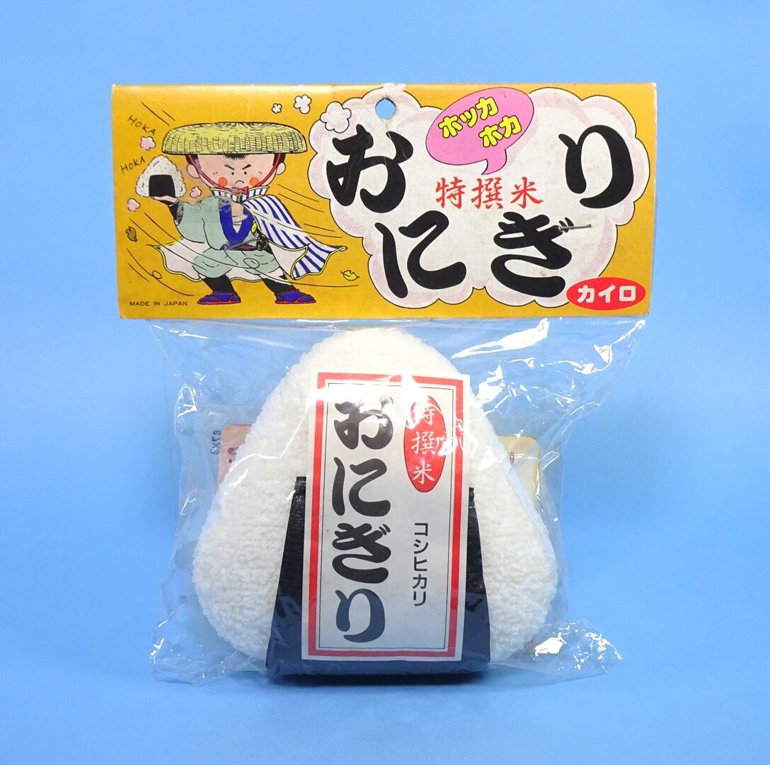 旅がらすニキがカイロを携帯するためのカイロカバー。おにぎりのぬいぐるみが分厚くて全然暖まらなそう。