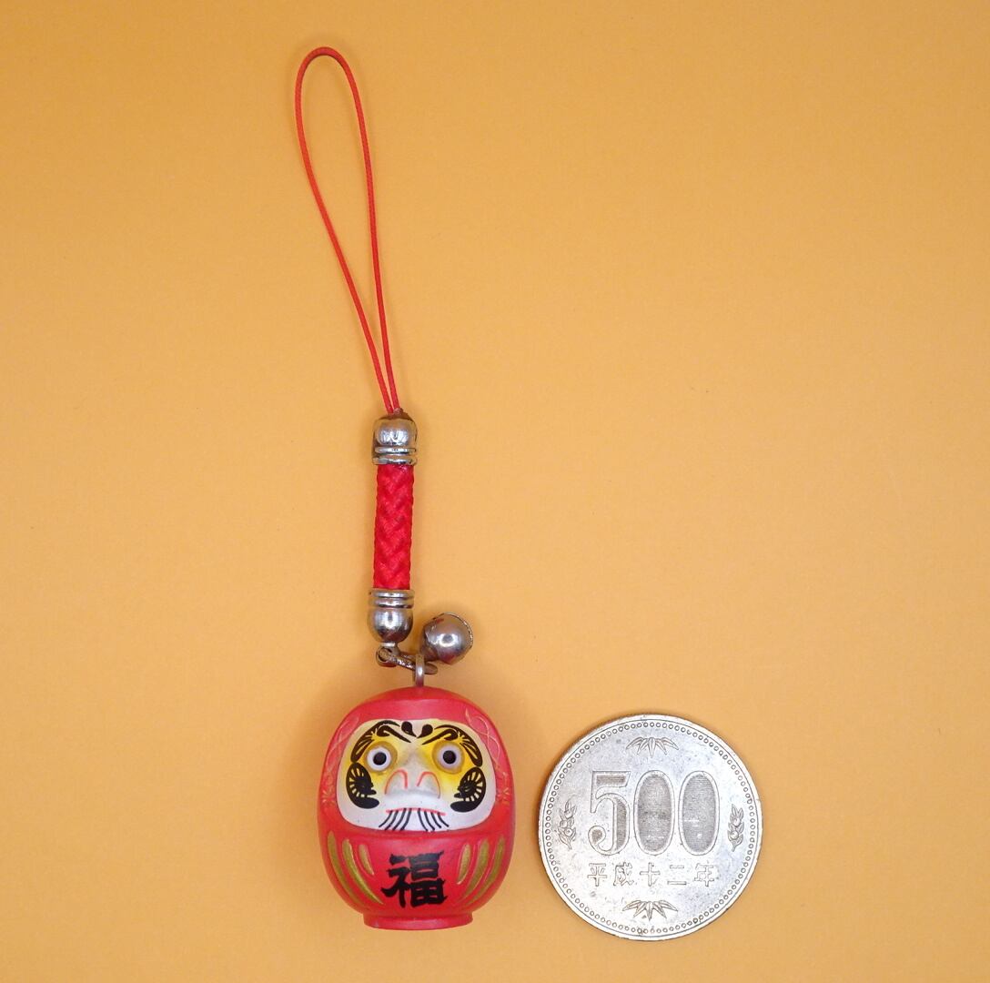 達磨を傾けると目玉が飛び出るストラップ。鈴付きでちょっとうるさい。